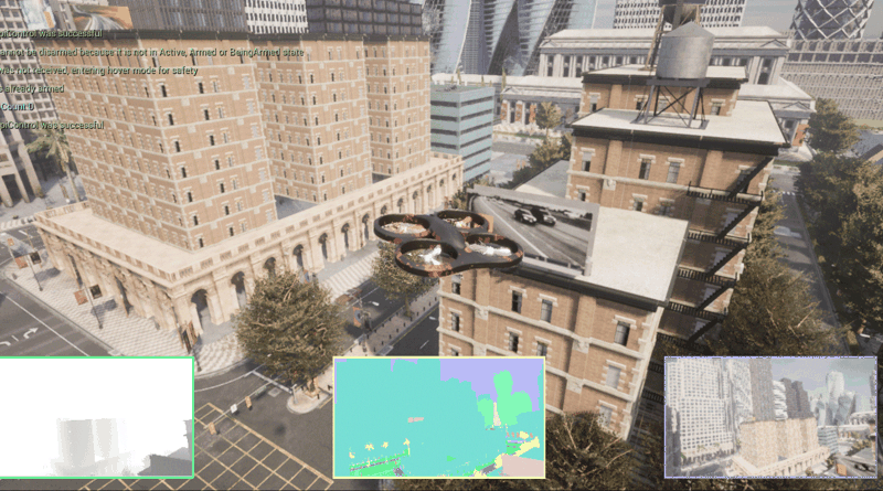 点击“否”表示使用无人机、“是”表示使用AirSim的车,但是 AirSimGameMode 运行时,因Town10HD_Opt 因为是分层地图,建筑没有加载,需要是地图 Town10HD,可以正常显示。按数字键1、2、3在场景下显示不同传感器的实时数据。